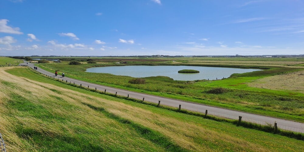 Über das Eidersperrwerk wechselten wir nach Dithmarschen und fanden in Westerdeichstrich bei Büsum den schön angelegten Platz: "Nordseecamping in Lee". Hier ließen wir die Seele baumeln und genossen das herrliche Wetter, bei kurzen Radetappen und im angemieteten Strandkorb. Sogar das Bad in der Nordsee kostete ob der ungewöhnlich warmen See keine Überwindung. Zum Abschluss besuchten wir die Seehundaufzuchtstation in Friedrichskoog und nahmen die Fähre über Glückstadt zurück.
