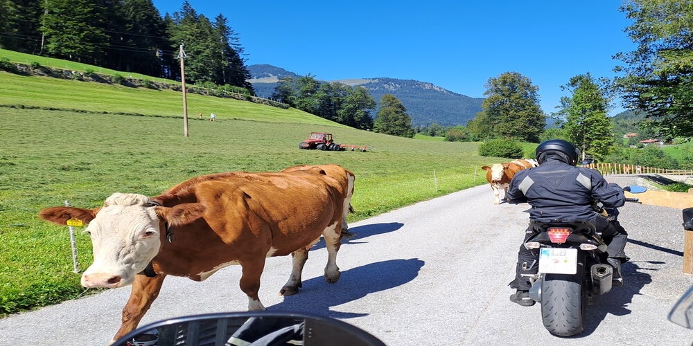 In der Ferienanlage der Post konnten sich Mitglieder vom MCU einbuchen und so einen Urlaub in Ferienhäusern ganz flexibel gestalten. Petra nahm den Bus mit den Fahrrädern, während ich in kleinerer Gruppe mit anderen MCU'lern mit den Motorrädern anreisten. So konnten wir vor Ort gemeinsam an Motorradtouren teilnehmen oder zusammen mit den Fahrrädern die Wiesen-und Bergwelt um Inzell erkunden. Gesellige Abende auf der Anlage mit Grillen, Kegeln und sogar mal Fußballgolf ließ die Zeit schnell verfliegen.